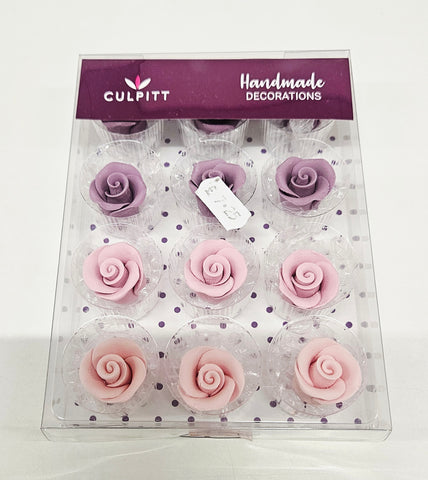 These 20mm sweet sugar roses are hand crafted from sugar paste and are ideal for decorating cupcakes, birthday cakes and wedding cakes.