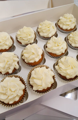We bake plain, un-decorated cupcakes, ready for you to add your own creative touch! These generous, muffin-sized cupcakes are available in vanilla or chocolate.