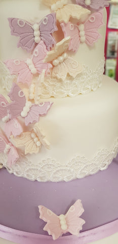 Non edible lace banding. Approximately 1.5" deep and price is per metre. It's labelled ivory but to the naked eye it's fairly whitish so will look good on any cake colour. The black lace is a slightly different design.
